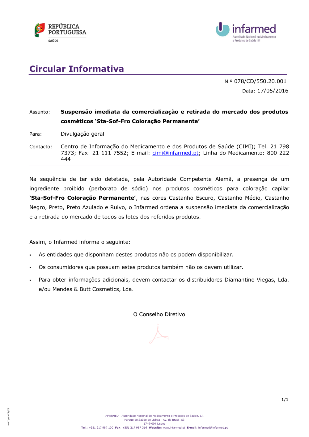 Categorias: Circulares Público: Cidadãos Entidades Profissionais de saúde Taxonomias: Cosméticos Alertas de segurança