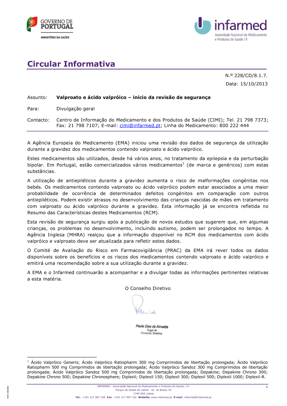 Circular Informativa nº. 228/CD/8.1.7, de 15/10/2013