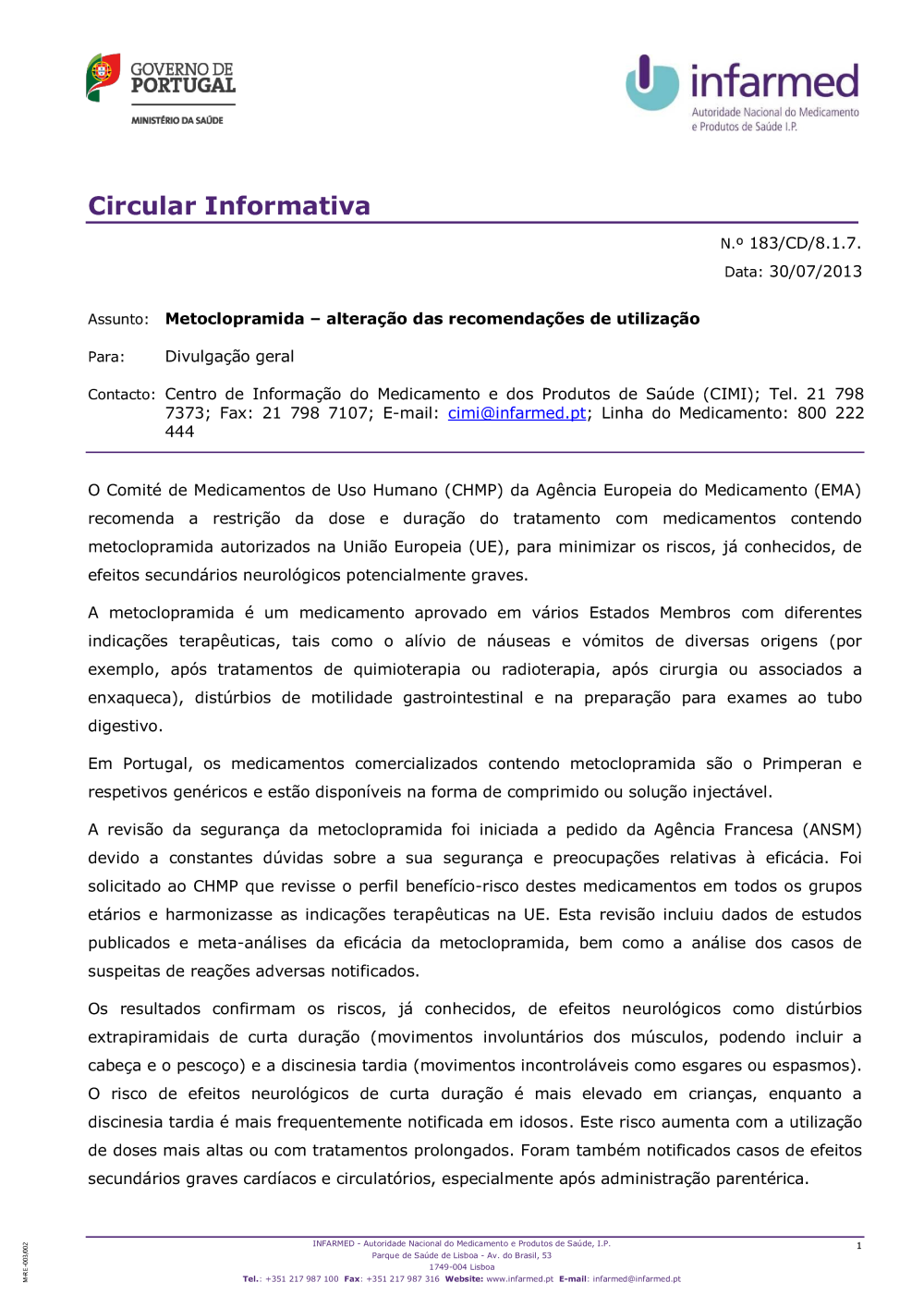 Uploads feitos por Javier Sanchez Doncel, 31-07-2013 10:44 Categorias: Circulares Público: Cidadãos Entidades Profissionais de saúde Taxonomias: Alertas de segurança