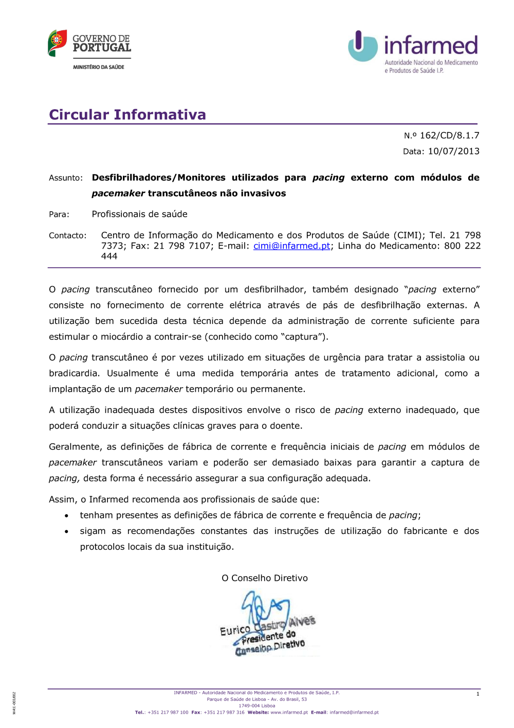 Categorias: Circulares Público: Cidadãos Entidades Profissionais de saúde Taxonomias: Alertas de segurança