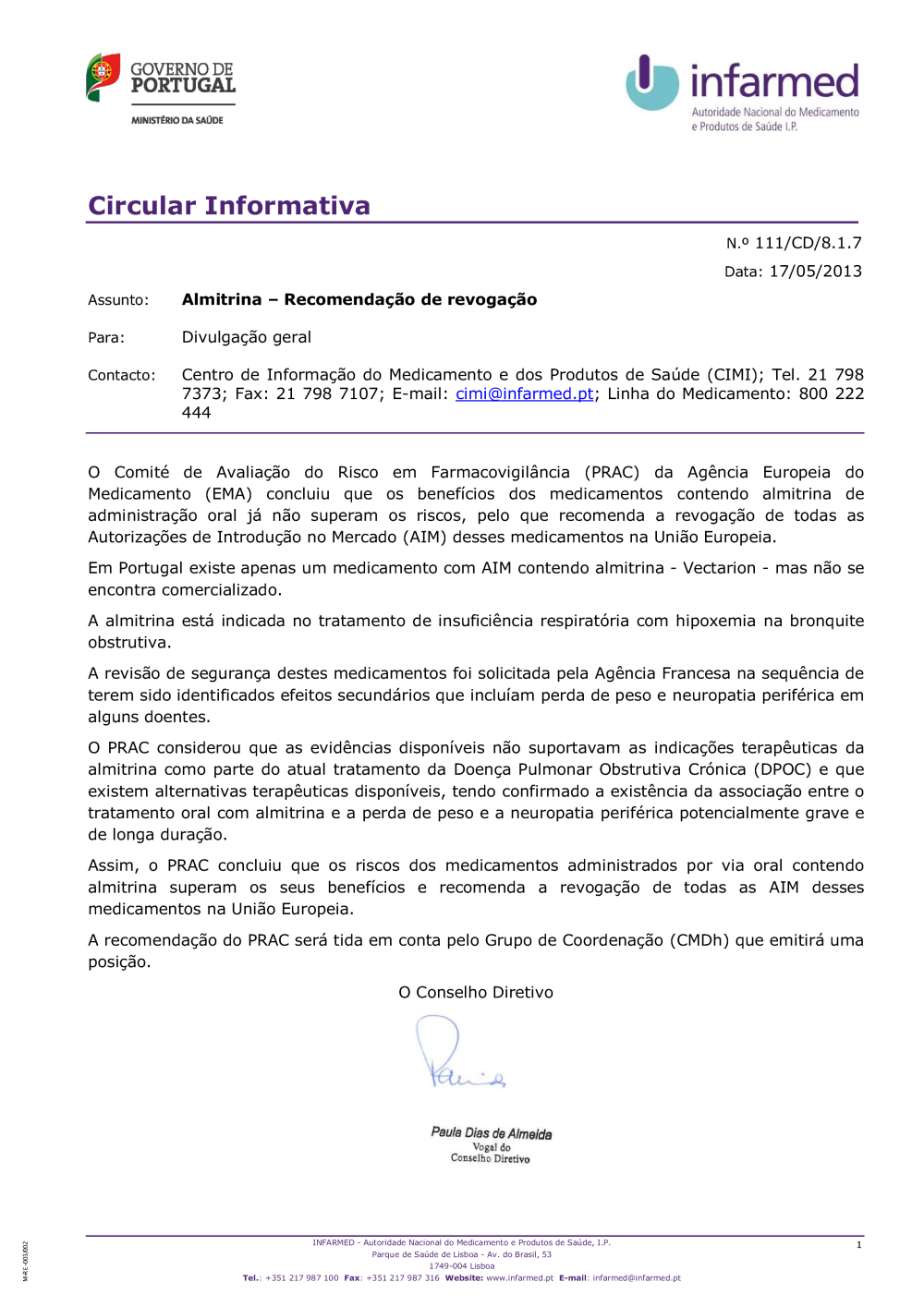 Almitrina - Recomendação de revogação