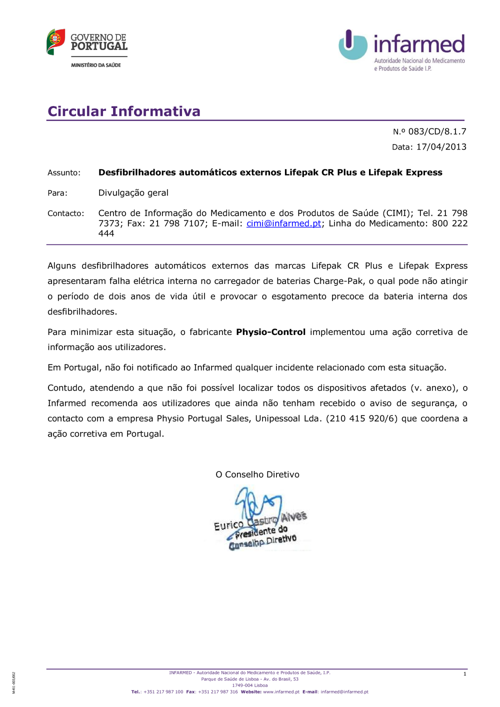 Uploads feitos por Javier Sanchez Doncel, 19-04-2013 12:28 Categorias: Circulares Público: Cidadãos Entidades Profissionais de saúde Taxonomias: Alertas de segurança