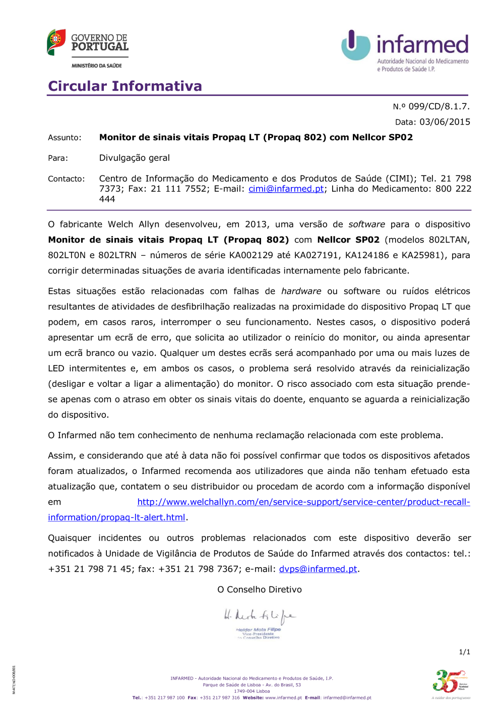 Uploads feitos por Javier Sanchez Doncel, 04-06-2015 14:18 Categorias: Circulares Público: Cidadãos Entidades Profissionais de saúde Taxonomias: Dispositivos médicos Alertas de segurança