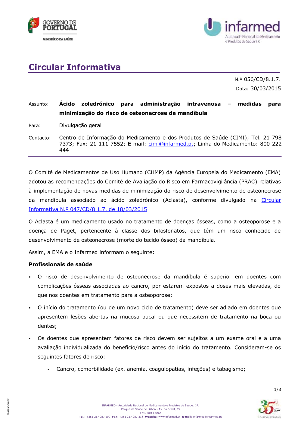 Uploads feitos por Javier Sanchez Doncel, 30-03-2015 21:14 Categorias: Circulares Público: Cidadãos Entidades Profissionais de saúde Taxonomias: Medicamentos de uso humano Farmacovigilância Alertas de segurança