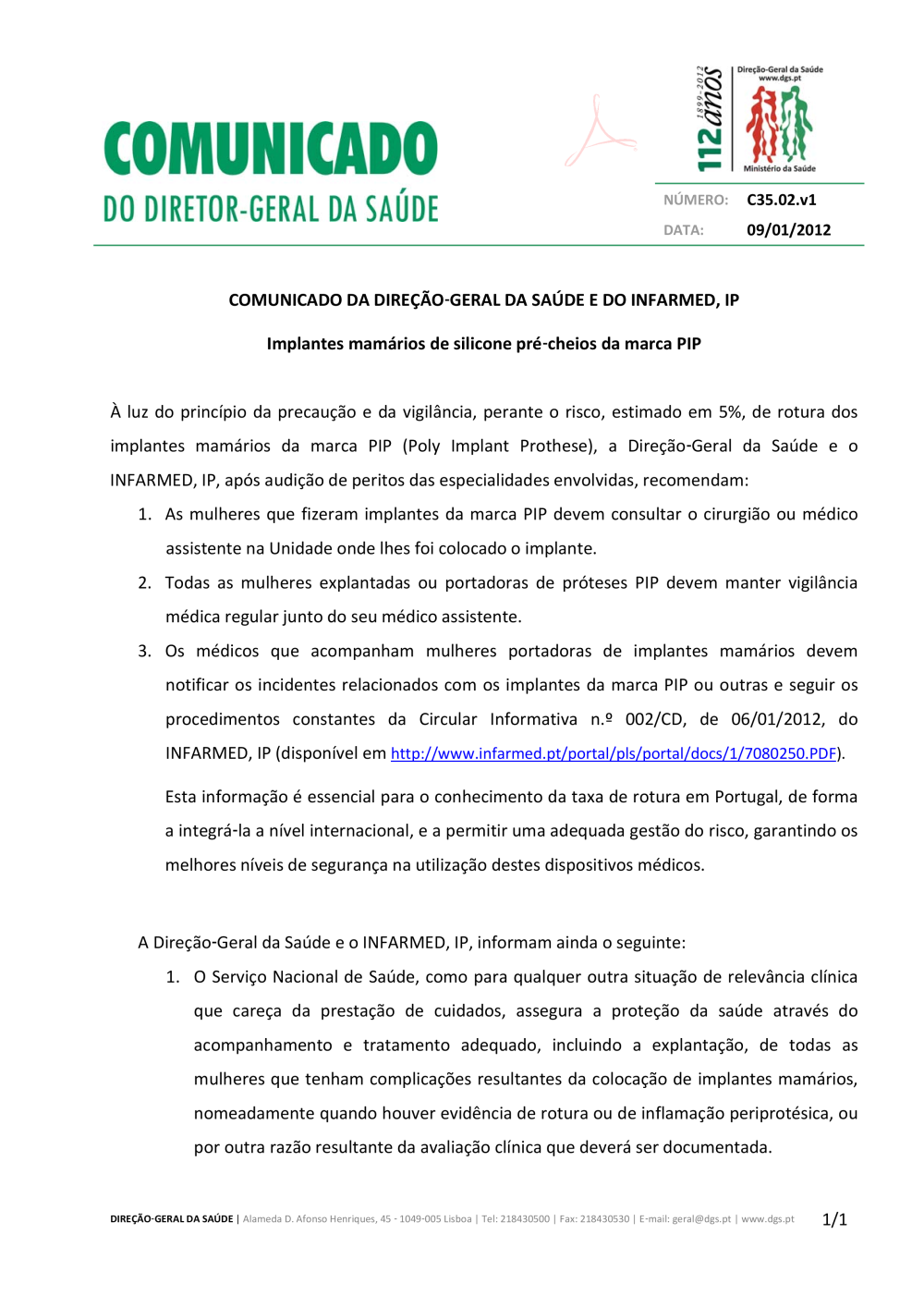 Uploads feitos por Javier Sanchez Doncel, 04-11-2013 14:38 Categorias: Circulares Público: Cidadãos Entidades Profissionais de saúde Taxonomias: Alertas de segurança