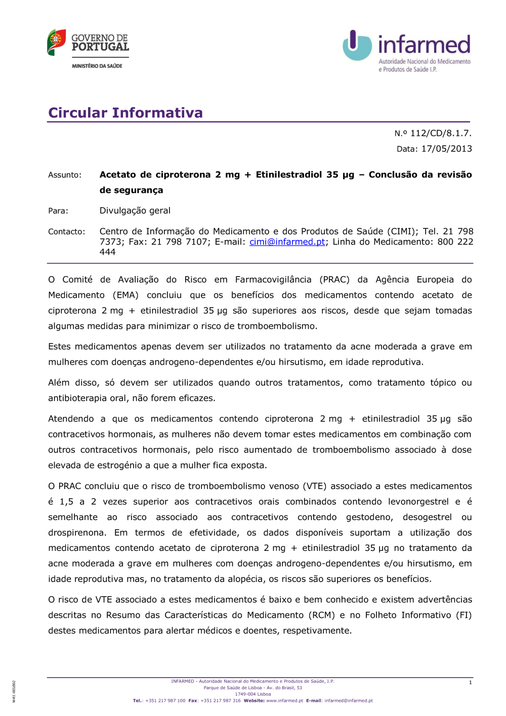 Acetato de ciproterona 2 mg + Etinilestradiol 35 µg - Conclusão da revisão