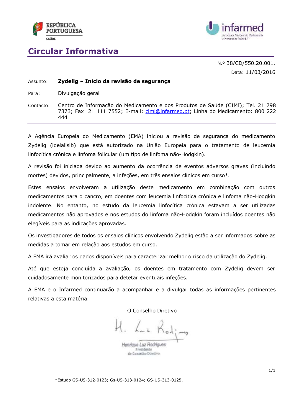 Uploads feitos por Javier Sanchez Doncel, 27-07-2016 9:56 Categorias: Circulares Público: Cidadãos Entidades Profissionais de saúde Taxonomias: Medicamentos de uso humano Alertas de segurança