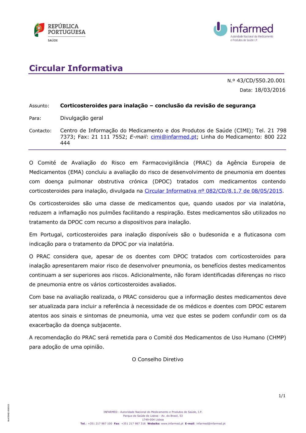 Uploads feitos por Javier Sanchez Doncel, 03-05-2016 13:09 Categorias: Circulares Público: Cidadãos Entidades Profissionais de saúde Taxonomias: Medicamentos de uso humano Alertas de segurança