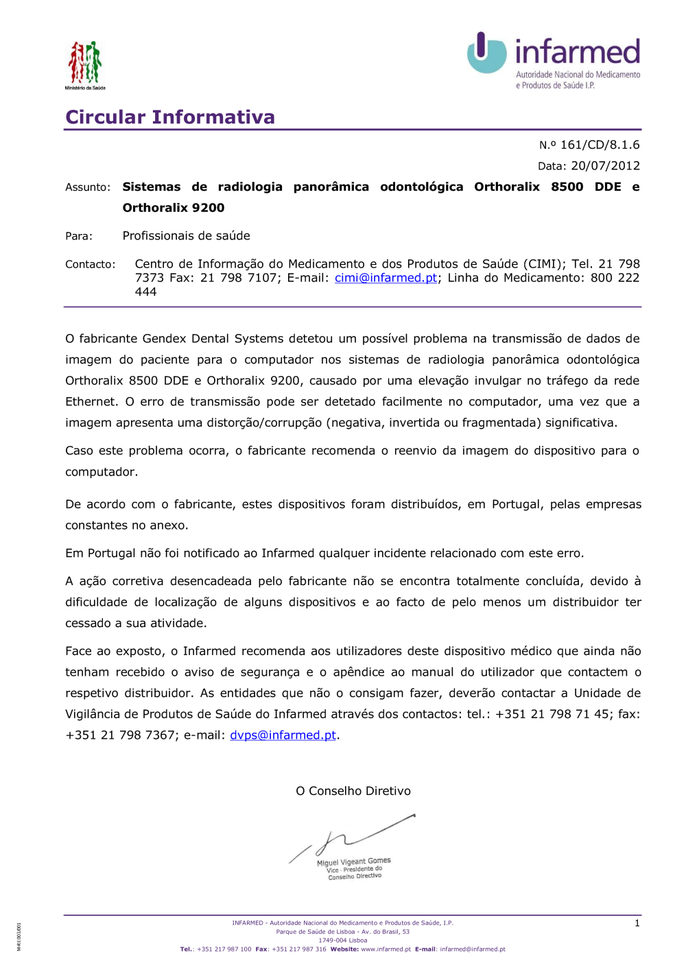Uploads feitos por Javier Sanchez Doncel, 20-07-2012 18:11 Categorias: Circulares Público: Cidadãos Entidades Profissionais de saúde Taxonomias: Alertas de segurança