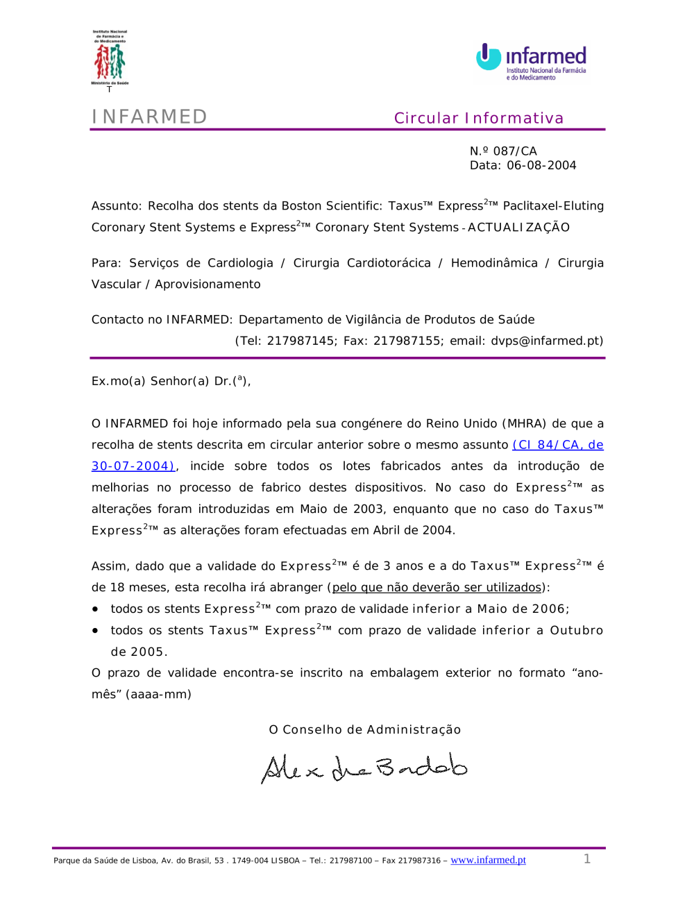 Uploads feitos por Javier Sanchez Doncel, 09-08-2004 16:34 Categorias: Circulares Público: Cidadãos Entidades Profissionais de saúde Taxonomias: Alertas de segurança