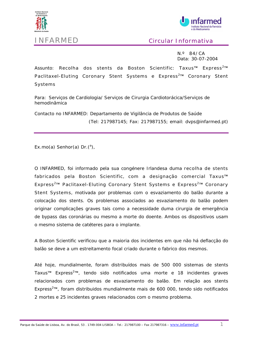Uploads feitos por Javier Sanchez Doncel, 04-08-2004 16:50 Categorias: Circulares Público: Cidadãos Entidades Profissionais de saúde Taxonomias: Alertas de segurança