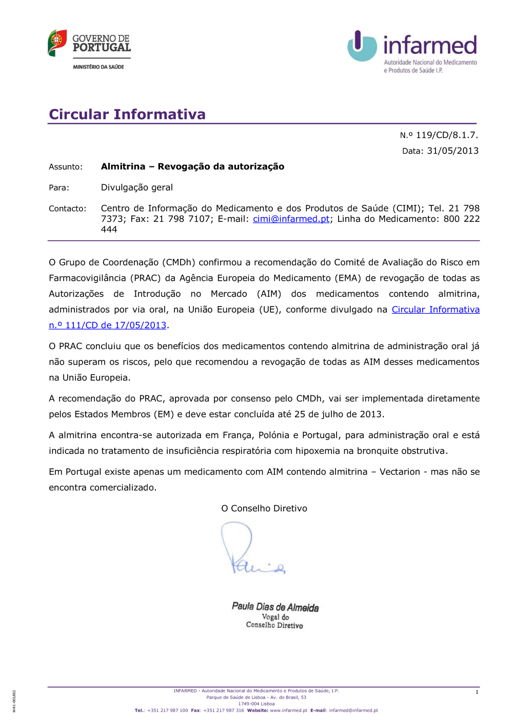 Uploads feitos por Javier Sanchez Doncel, 31-05-2013 21:47 Categorias: Circulares Público: Cidadãos Entidades Profissionais de saúde Taxonomias: Alertas de segurança