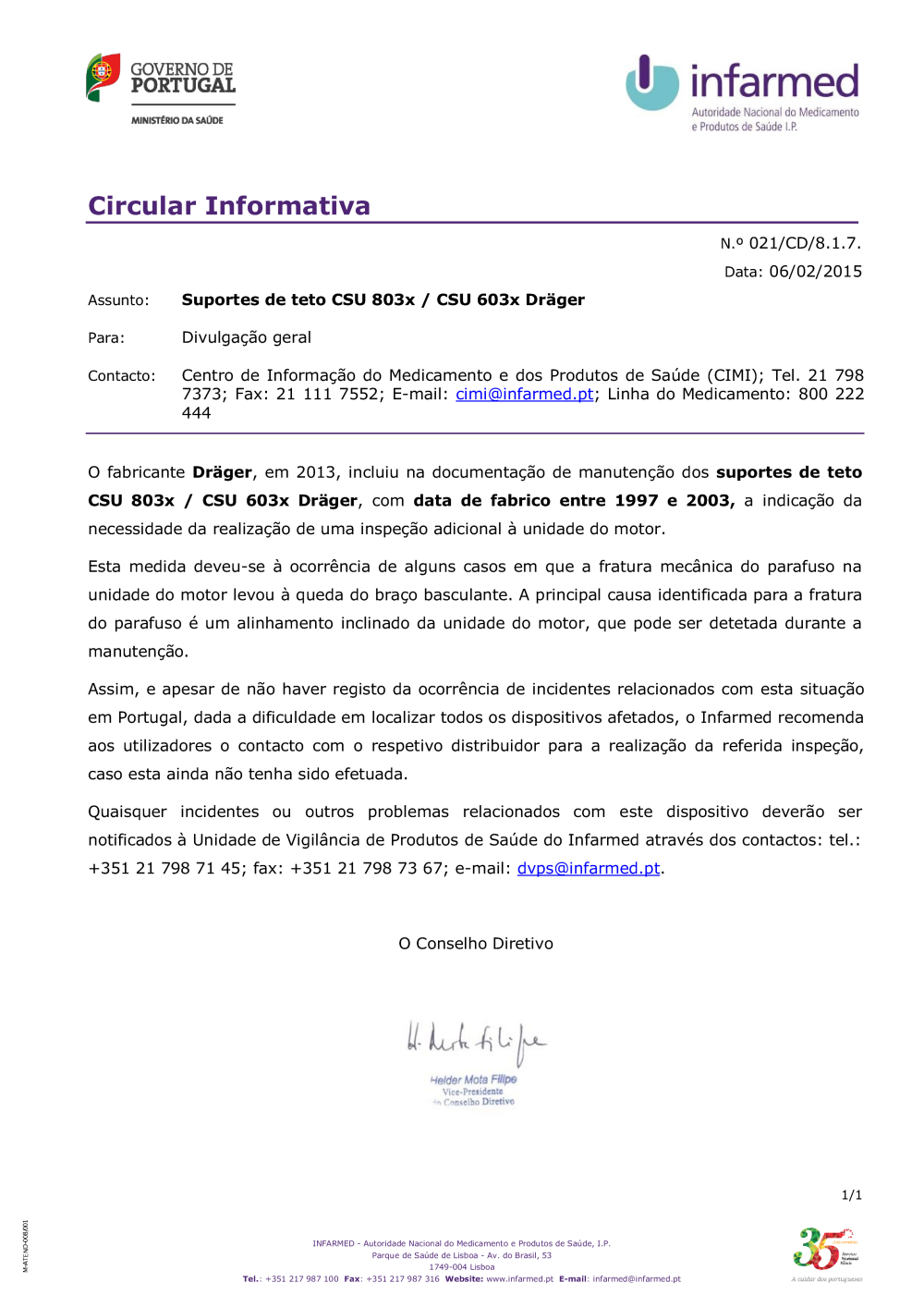 Uploads feitos por Javier Sanchez Doncel, 10-02-2015 9:56 Categorias: Circulares Público: Cidadãos Entidades Profissionais de saúde Taxonomias: Dispositivos médicos Alertas de segurança