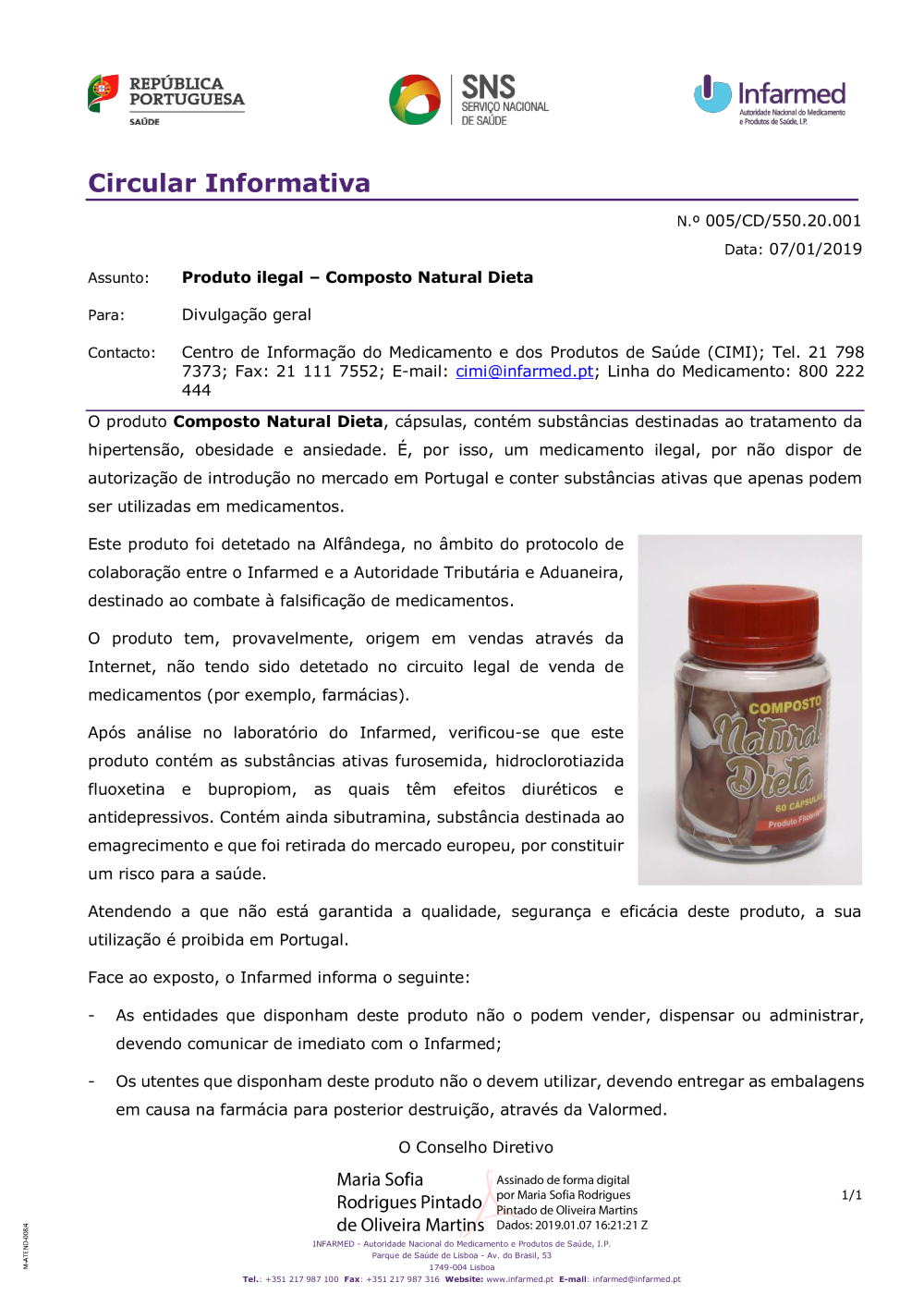 Circular Informativa N.º 005/CD/550.20.001 de 07/01/2019