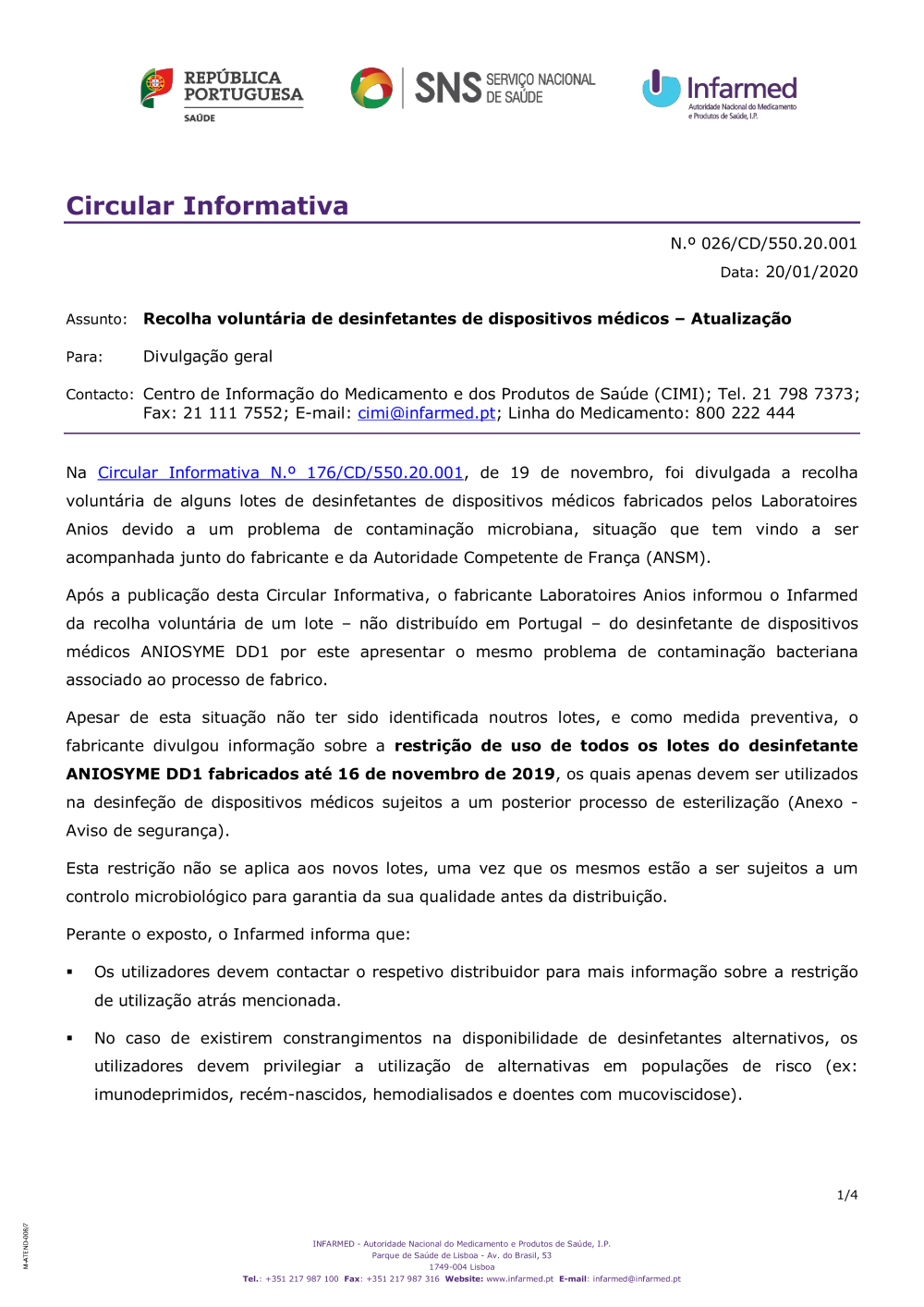Circular informativa N.º 026/CD/550.20.001 de 20/01/2020