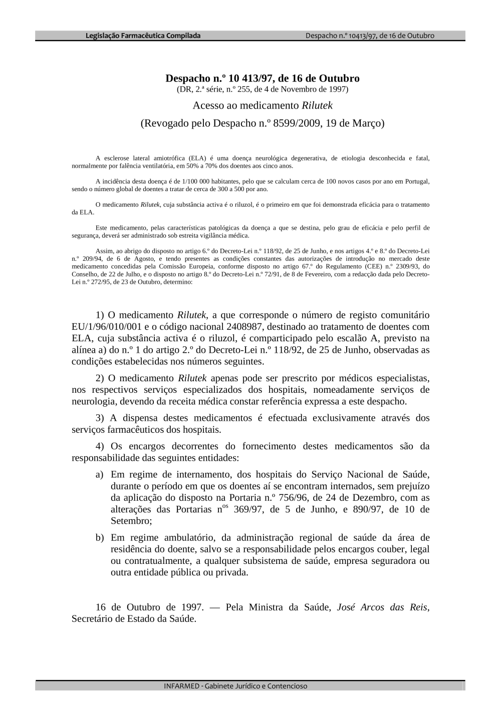 Acesso ao medicamento Rilutek (Revogado pelo Despacho n.º 8599/2009, 19 de Março)