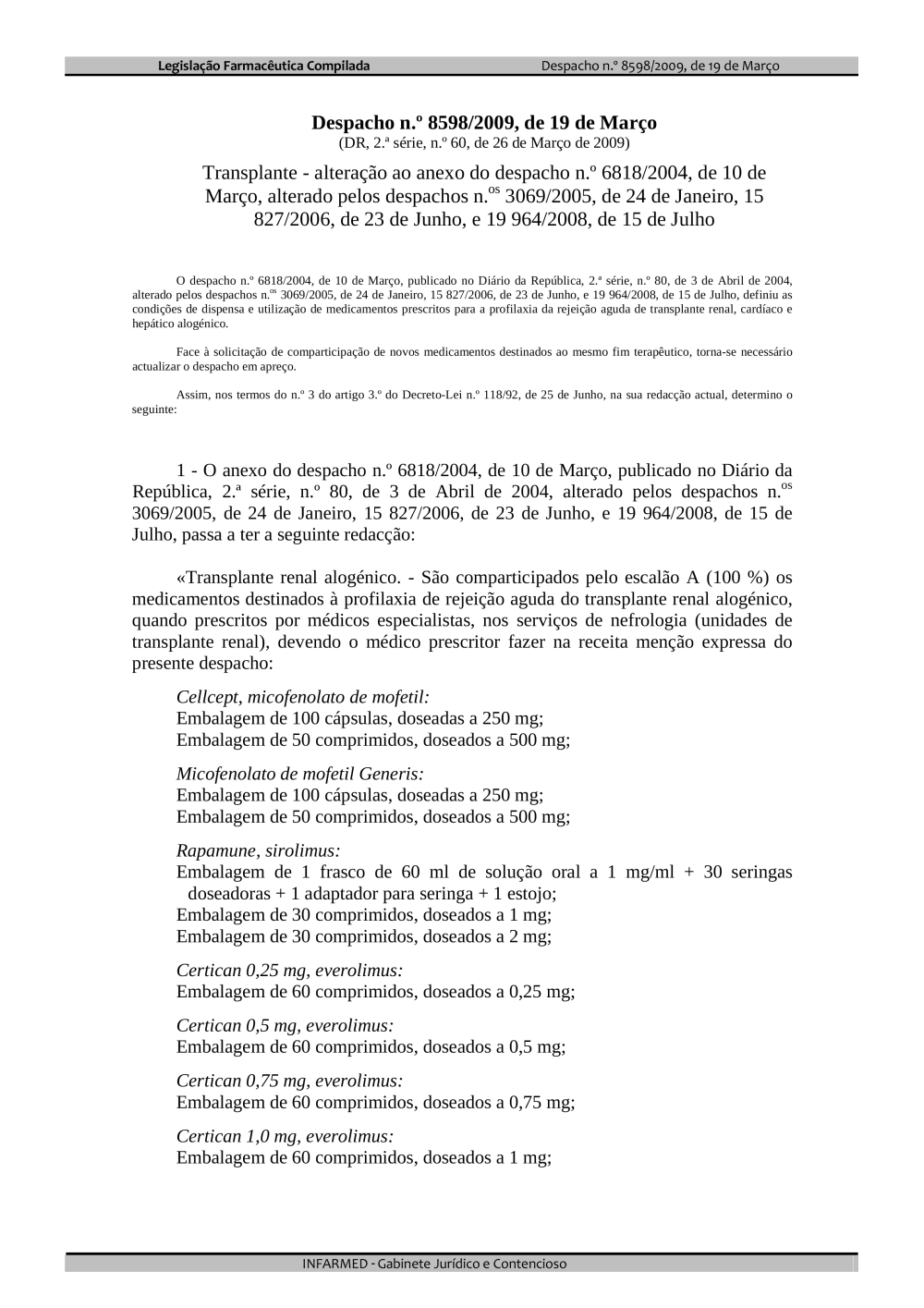 Transplante - alteração ao anexo do despacho n.º 6818/2004, de 10 de Março, alterado pelos despachos n.os 3069/2005, de 24 de Janeiro, 15 827/2006, de 23 de Junho, e 19 964/2008, de 15 de Julho