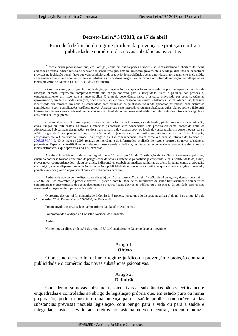 Decreto-Lei n.º 54-2013, de 17 de abril (Versão 1.0)