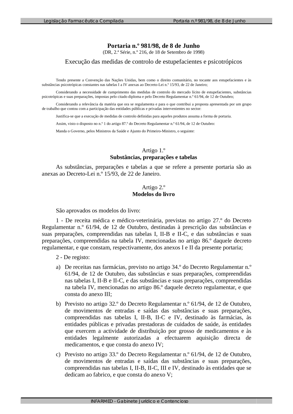 Portaria n.º 981-98, de 8 de Junho (Versão 1.0)