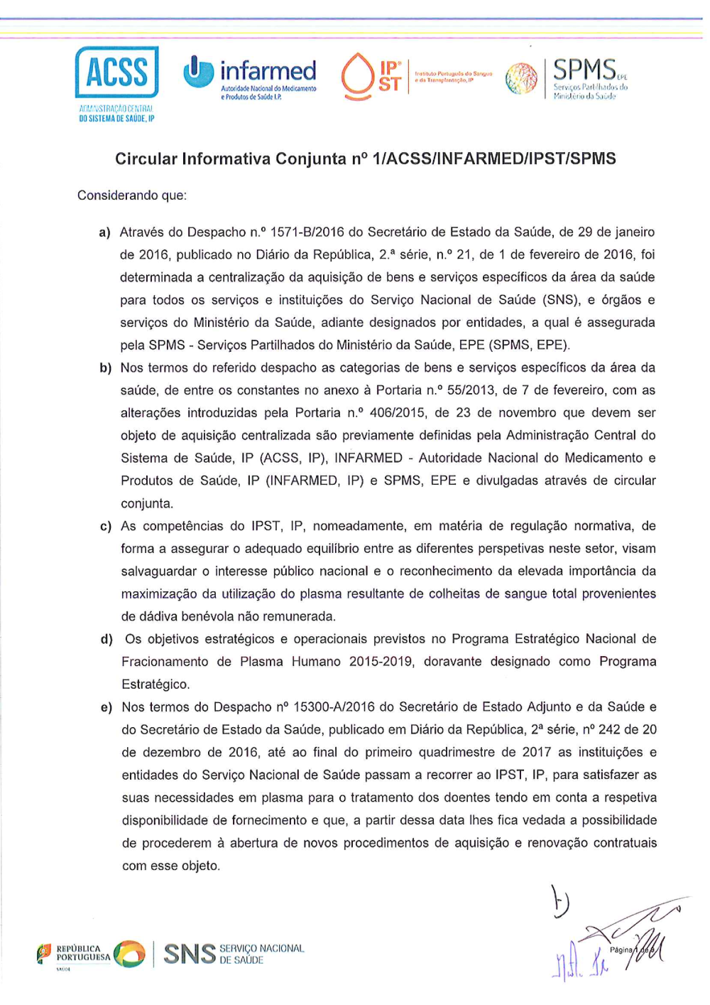 Uploads feitos por teresa canelhas, 30-01-2017 15:40 Categorias: Circulares Público: Cidadãos Entidades Profissionais de saúde Taxonomias: Medicamentos de uso humano Dispensa Hemoderivados