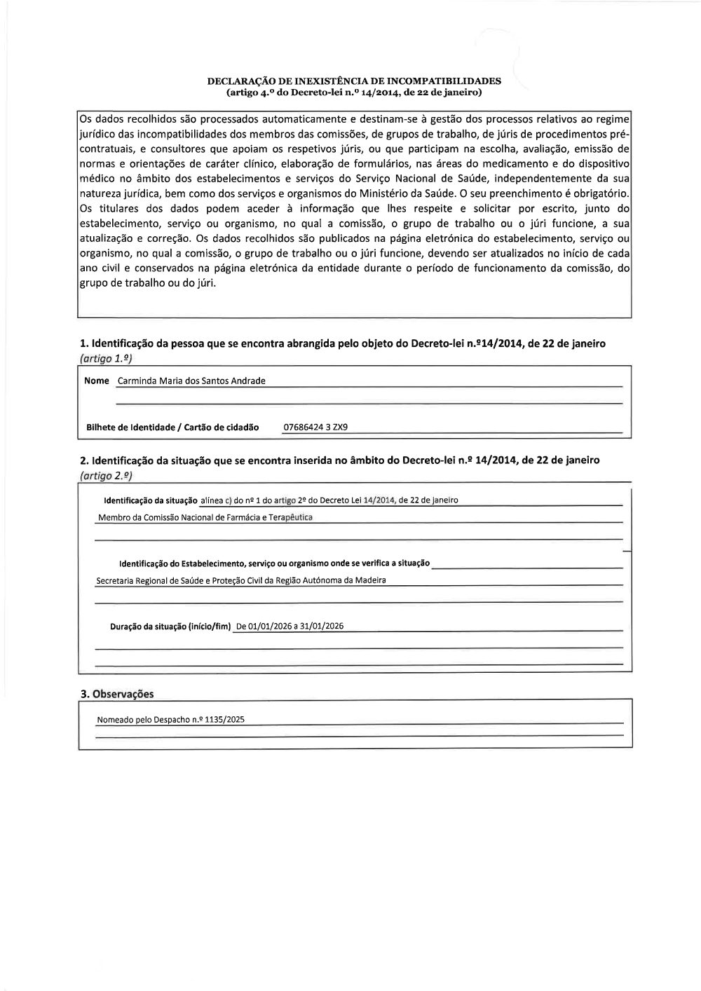Uploads feitos por Ana Bernardo, 23-01-2026 10:35 Categorias: Documentos institucionais Público: Cidadãos Entidades Profissionais de saúde Taxonomias: Informação institucional Recursos humanos