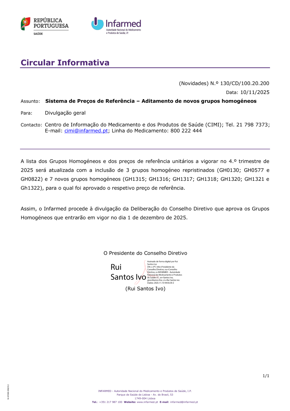 Uploads feitos por João Domingos, 13-11-2025 8:15 Categorias: Circulares Público: Cidadãos Entidades Profissionais de saúde Taxonomias: Comunicação Medicamentos de uso humano Preços