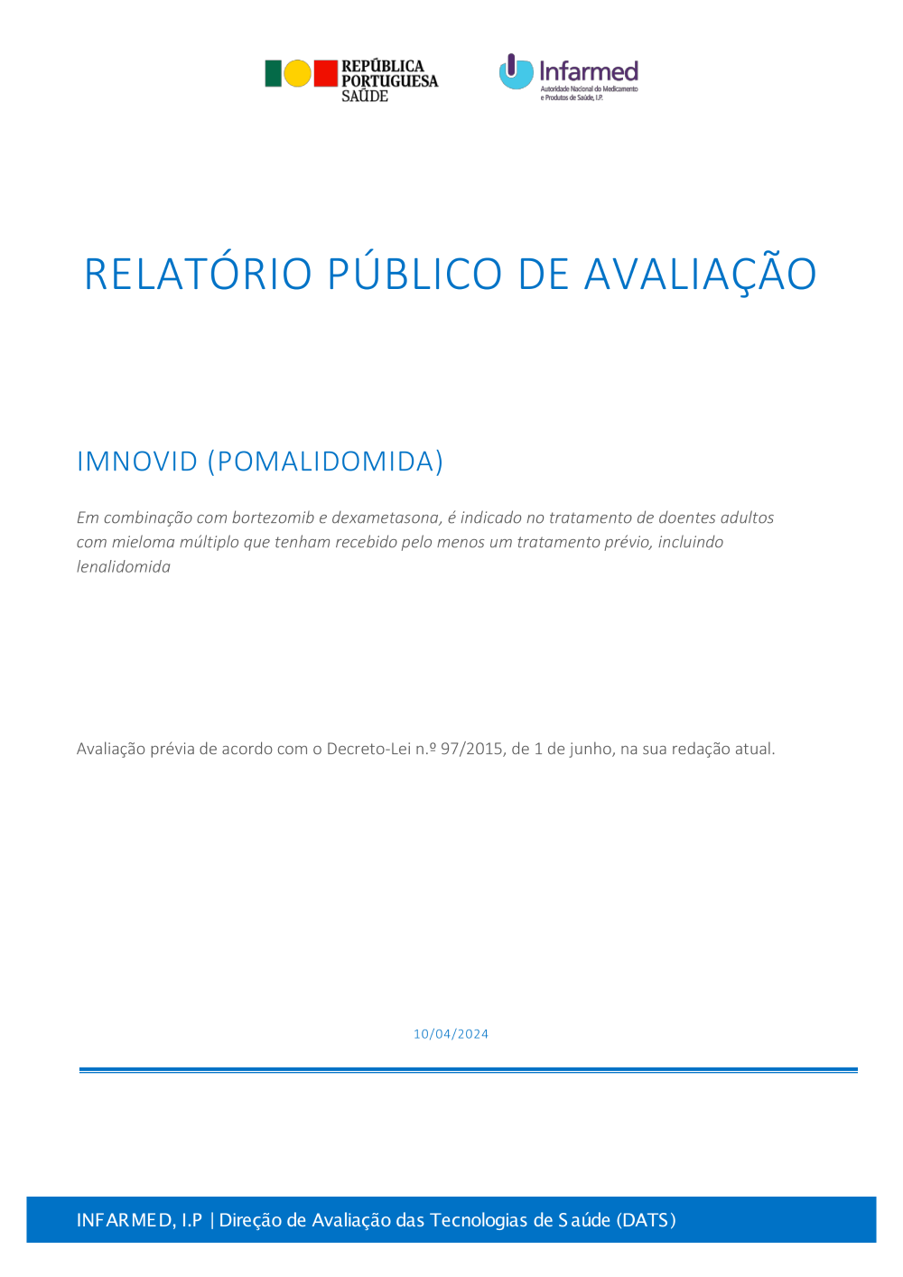 Relatório de avaliação de financiamento público de Imnovid (pomalidomida) (Versão 1.0)