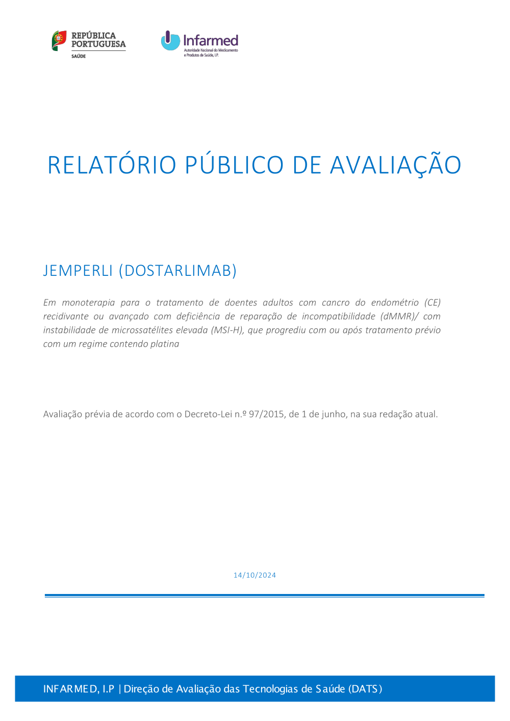 Relatório de avaliação de financiamento público de Jemperli (dostarlimab) 2L (Versão 1.0)