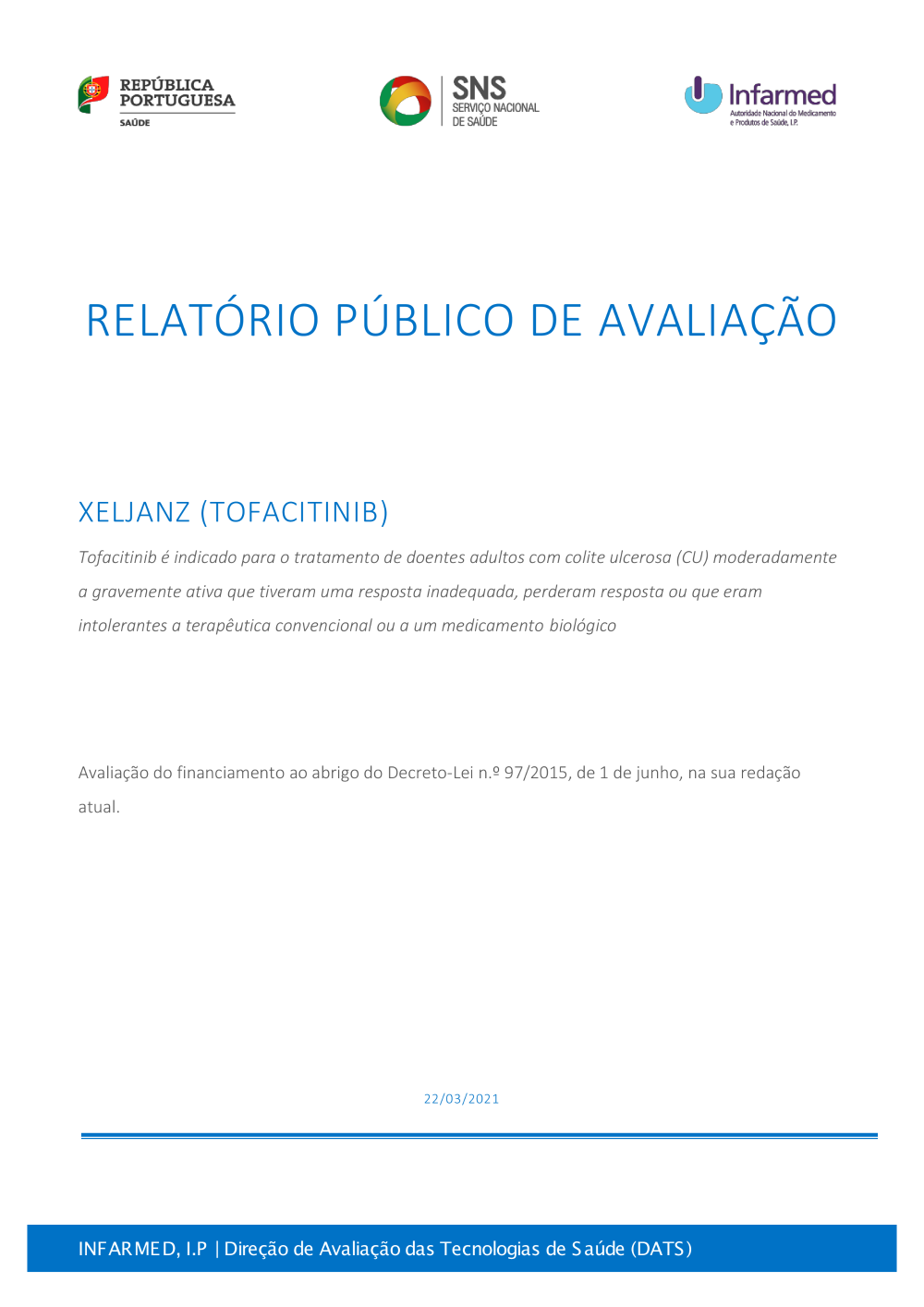 Relatório de avaliação de financiamento público de Xeljanz (Tofacitinib) 2021 (Versão 1.0)