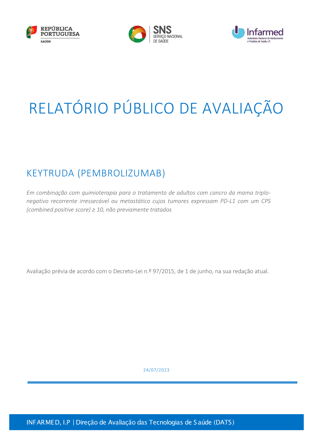 Conclusão do pedido de avaliação prévia do medicamento Keytruda (pembrolizumab)12 (Versão 1.0)