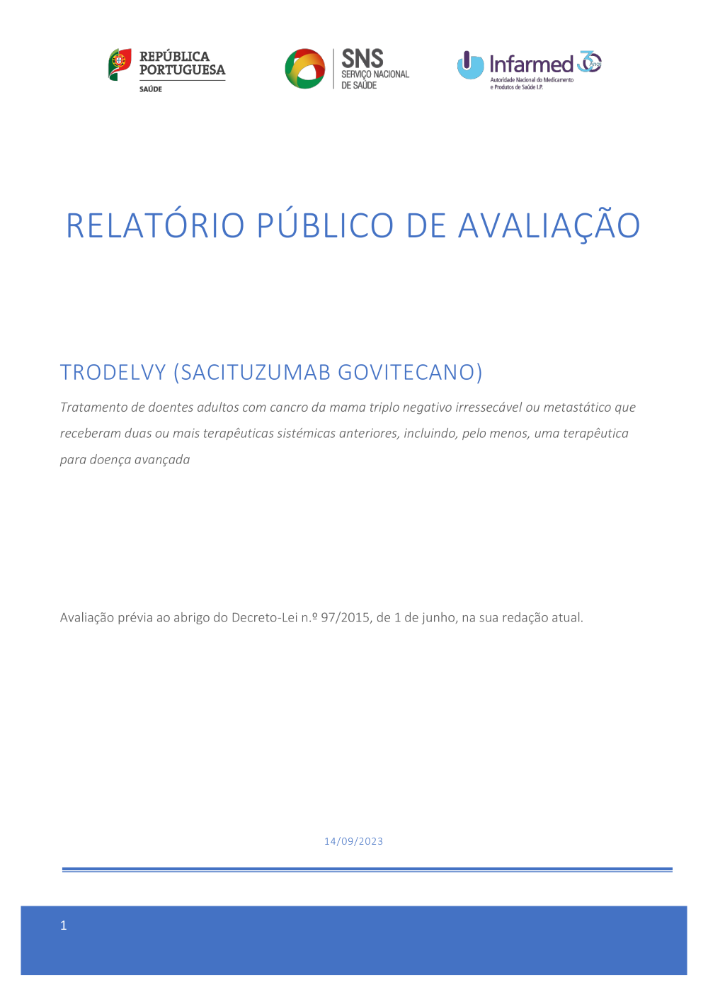 Relatório de avaliação de financiamento público de Trodelvy (sacituzumab govitecano) (Versão 1.0)