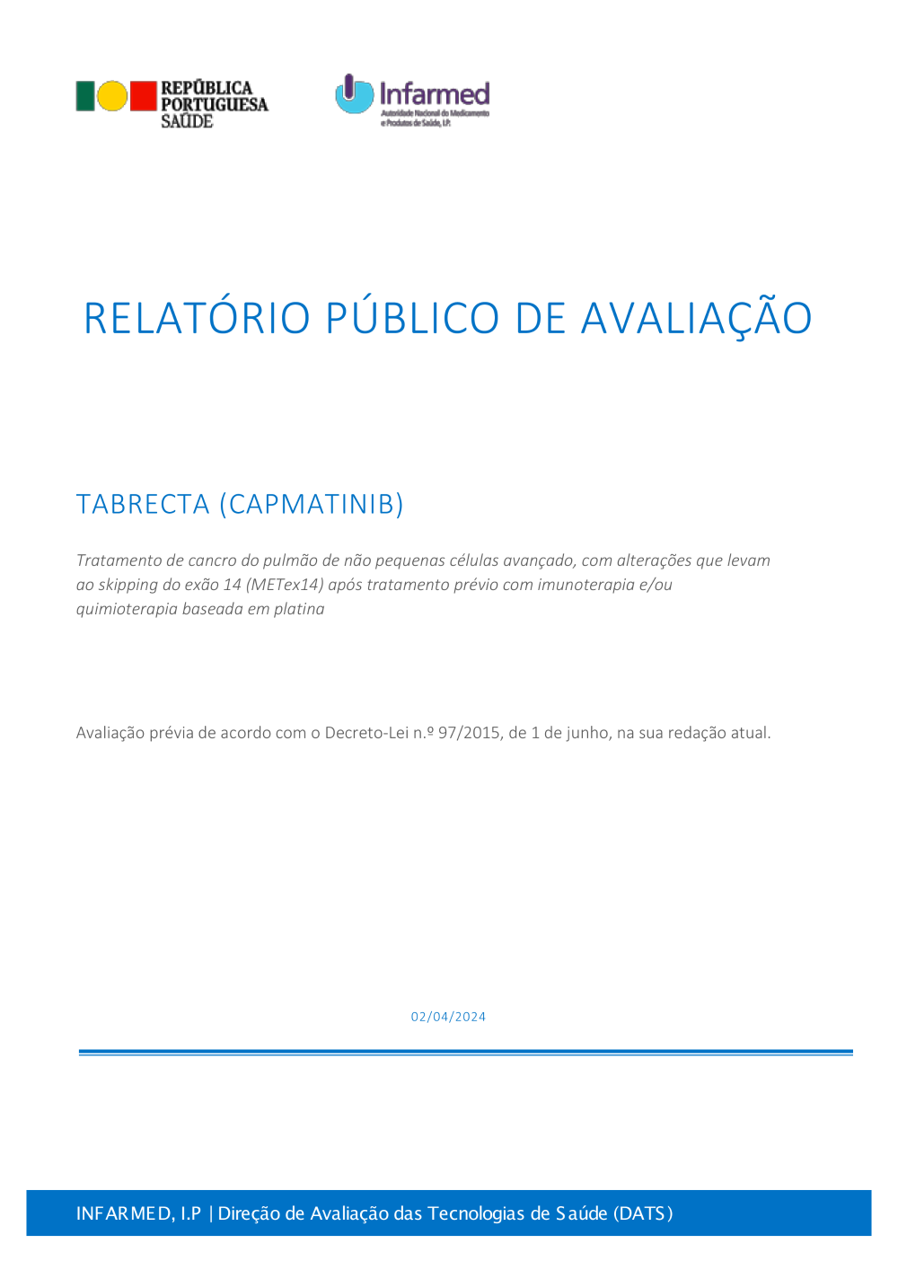Relatório de avaliação de financiamento público de Tabrecta (Capmatinib) (Versão 1.0)