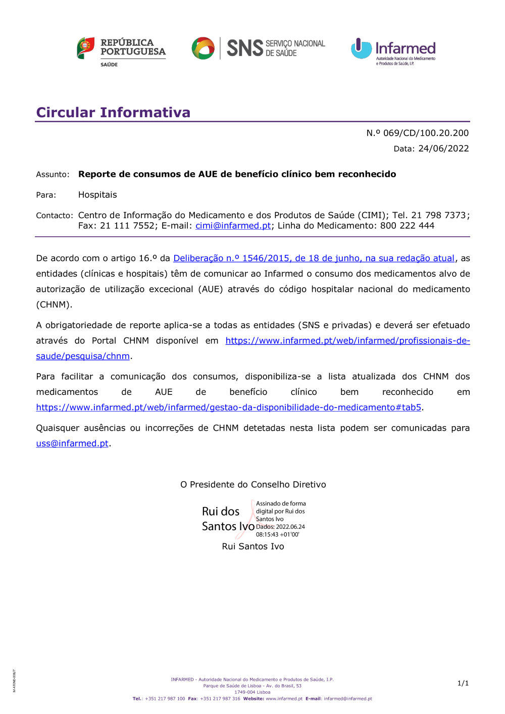 Uploads feitos por laura leite, 24-06-2022 10:01 Categorias: Circulares Público: Entidades Taxonomias: Medicamentos de uso humano Farmácias Dispensa Utilização