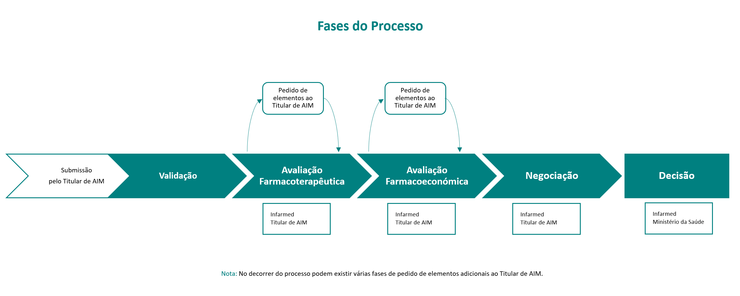 - Contagem Infarmed: incluí fases de avaliação farmacoterapêutica, avaliação farmacoeconómica e decisão (interveniente: Infarmed);