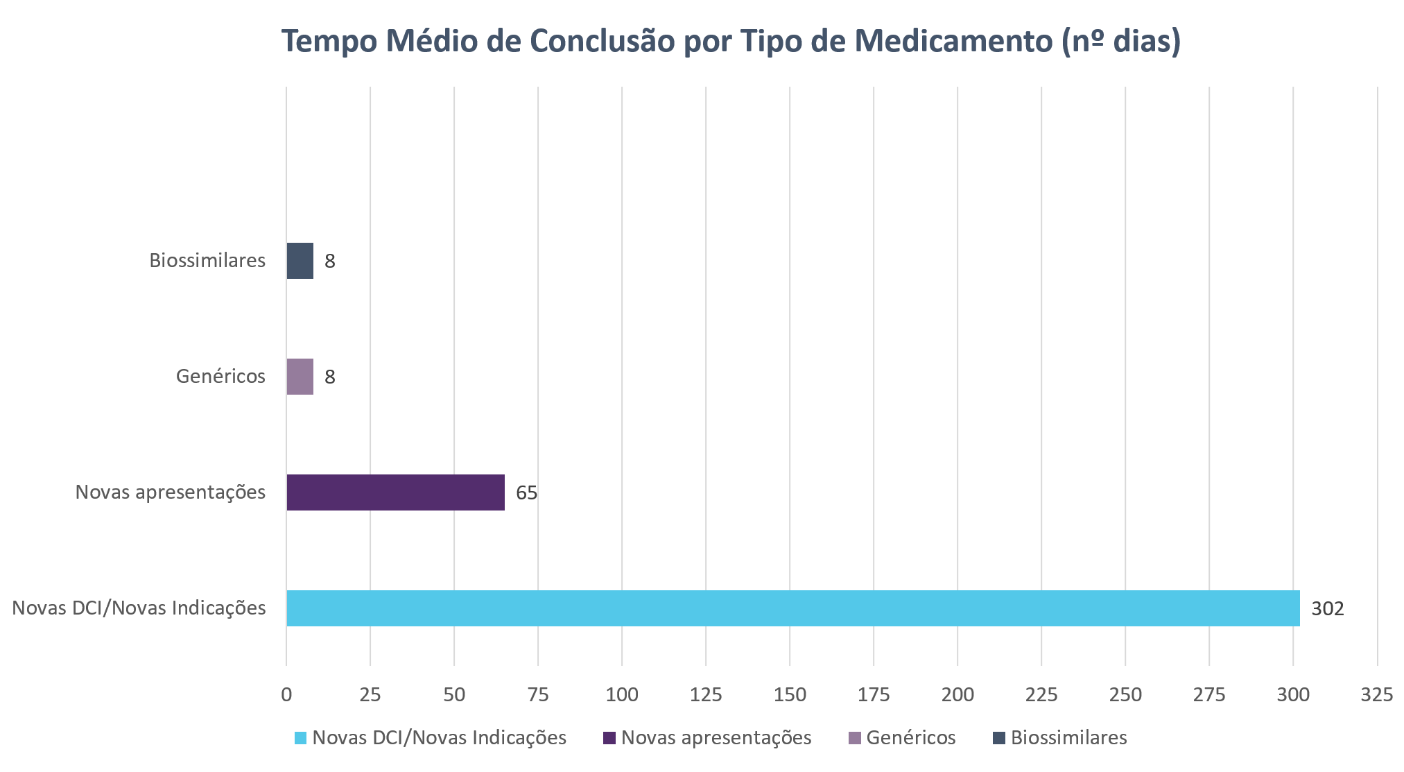 Tempo de conclusão: Número total de dias desde a data de início da avaliação farmacoterapêutica até à data de decisão de financiamento, com exclusão do tempo "Titular de AIM" e "Negociação";
